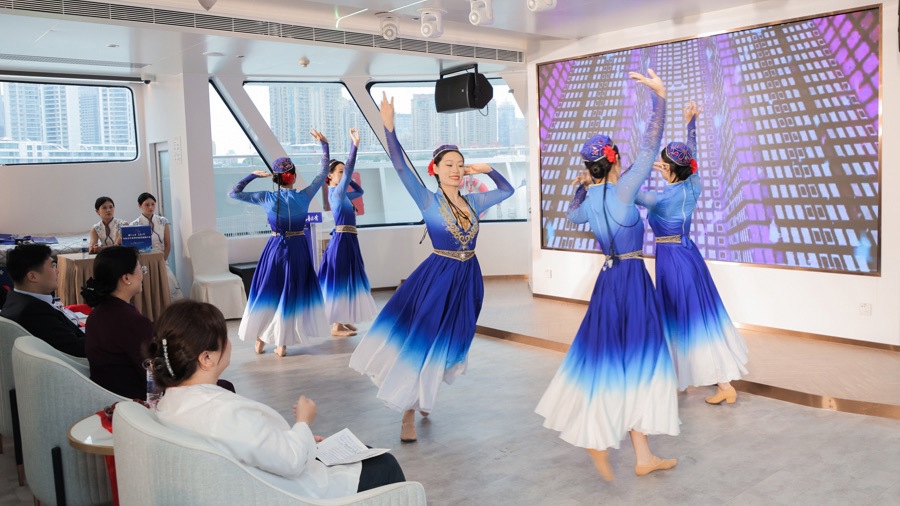 推介会尾声,当熟悉的麦西来普旋律再次在甲板上响起,游客们一边欣赏浦江两岸的秀丽风光,一边随着欢快的节奏翩翩起舞。上海这座海上丝绸之路的重要节点,与乌鲁木齐这座陆上丝绸之路的核心城市,在文化差异的碰撞中激发出奇妙的化学反应,让在场的每一位游客通过新疆歌舞实现了共鸣与共情。